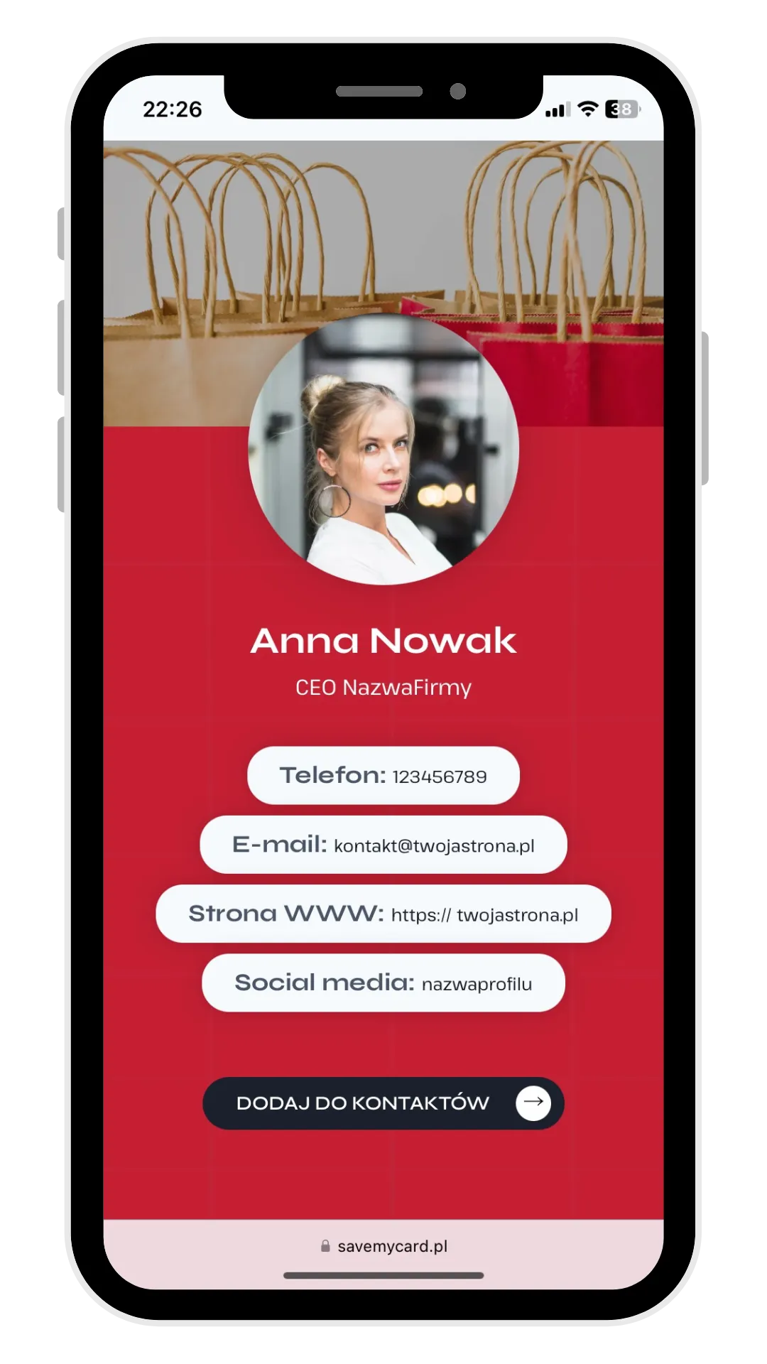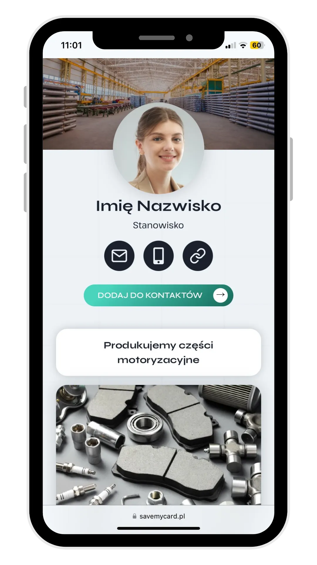 Nie ograniczaj się do standardowych danych kontaktowych! Wyróżnij się i pokaż więcej – swoje kluczowe usługi, topowe produkty, czy wyróżnienia. Stwórz wizytówkę, która przyciąga uwagę i sprzedaje już przy pierwszym kontakcie.